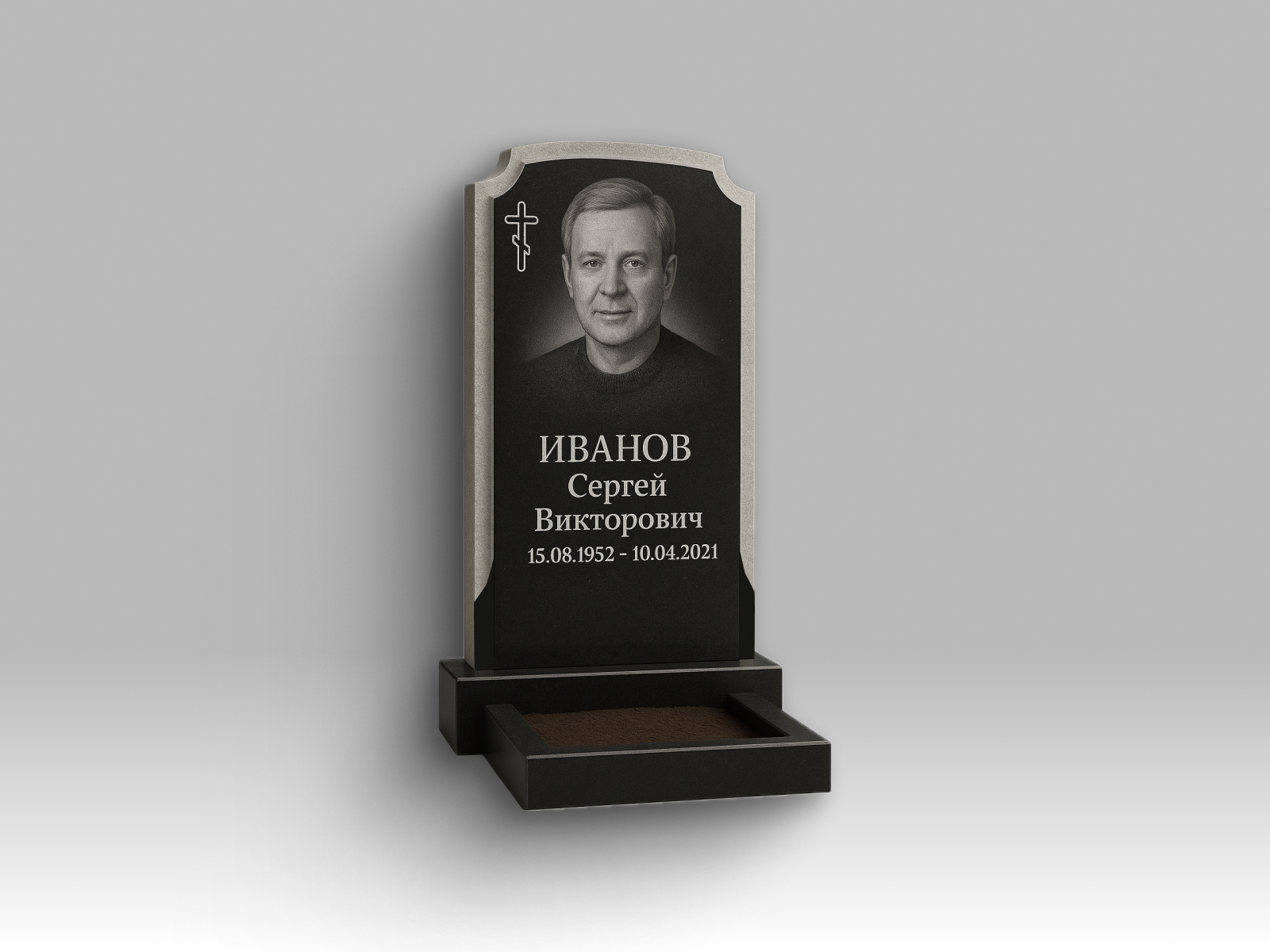 Карельский гранит обеспечивает исключительную прочность и выразительный контраст гравировки. Полированная поверхность отражает свет мягко и благородно, придавая памятнику ощущение цельности и долговечности.