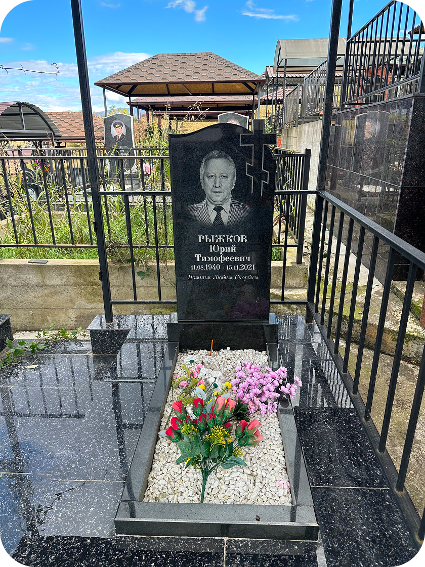 На сайте — базовый набор. Изготавливаем памятники любой сложности: индивидуальная форма, гравировка, авторский проект.